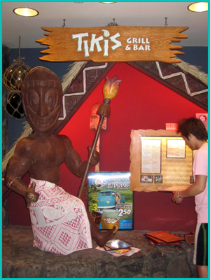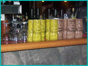 Tiki marching down the bar at Tiki's in Waikiki   Tiki's Waikiki Ambiance Photo by Robin Alexander