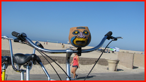 Tiki with lei .... Huntington Beach California By Tom Taylor   Not really a tiki but what the heck? Coconut Head on a Bike ... Huntington Beach Cali By Tom Taylor